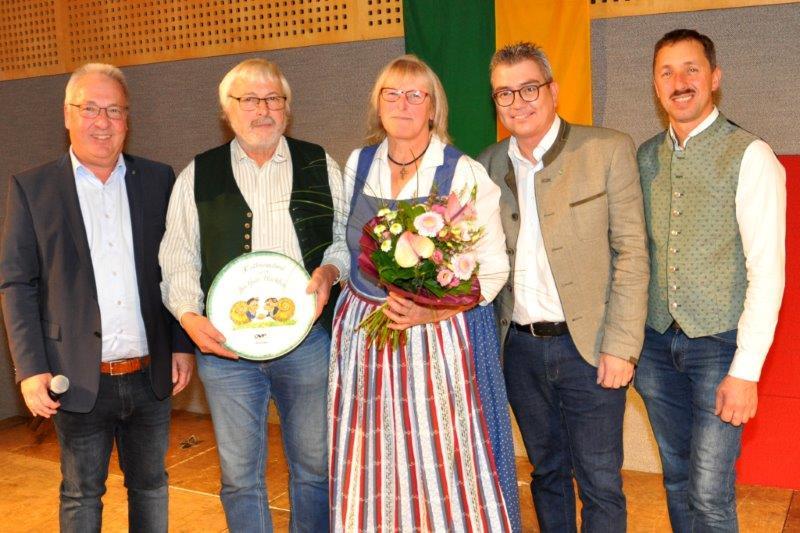 Der Höhepunkt des Abends war wieder die Verleihung des Titels „Der gute Nachbar“. Dieser symbolische Preis ging auch heuer wieder an eine Frau, die sich besonders für Verdienste in sozialen Angelegenheiten, die langjährige Kinderbetreuung sowie das gute Miteinander in der Laudachtalgemeinde einsetzt. Die Auszeichnung erhielt Frau Elfriede Hofstätter, die dann auf der Bühne ersuchte, den verliehenen Preis mit ihrem Mann teilen zu dürfen, „denn nur durch die Unterstützung ihres Mannes Ferdinand waren all diese Leistungen möglich“, so die Preisträgerin.