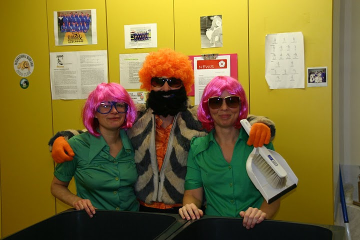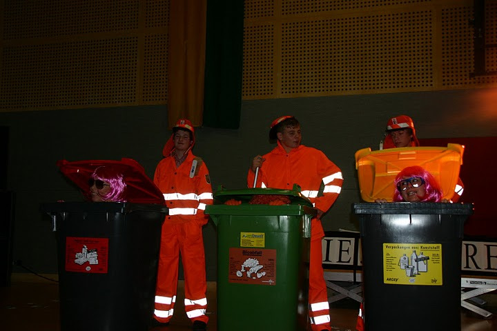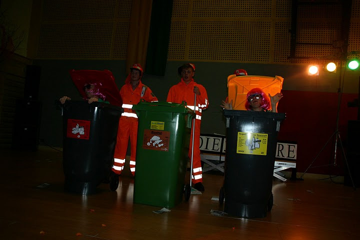 Orange ist nur die Müllabfuhr und ganz besonders wertvoll der Inhalt dieser Mülltonnen! (von links: Grill Petra, Kronberger Gerda und Buchegger Silvia mit den „Müllmännern“ der Judosektion)
